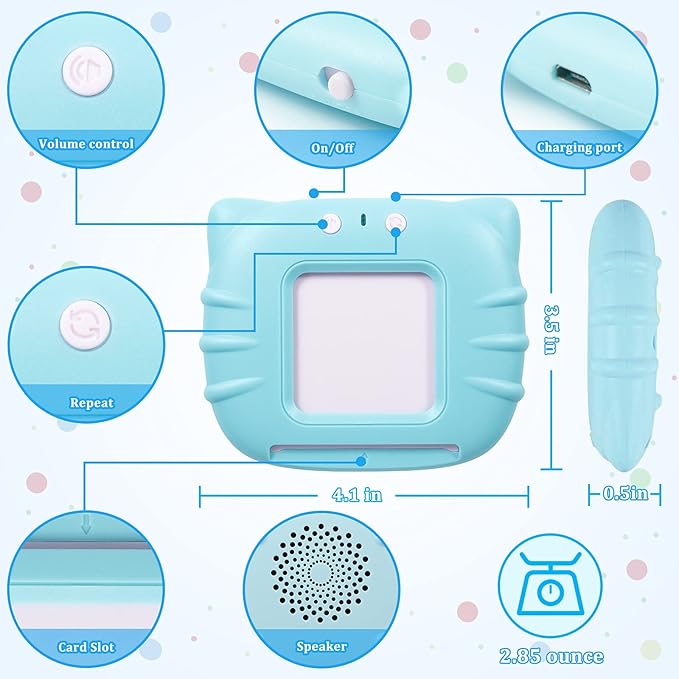 - No Screen & Storage Bag Provided - This interactive educational toy doesn’t have a screen and can keep kids away from mobile phone and tablets, reduce screen time effectively. A fabric storage bag is included to make it more convenient to keep 124 cards tidy and safe.