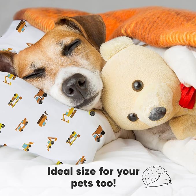 Toddler Pillow with Pillowcase - 13x18 My Little Dreamy Pillow, Organic Cotton Toddler Pillows for Sleeping, Kids Pillow, Travel Pillows,Mini Pillow,Nursery Pillow,Toddler Bed Pillow (Construction)
