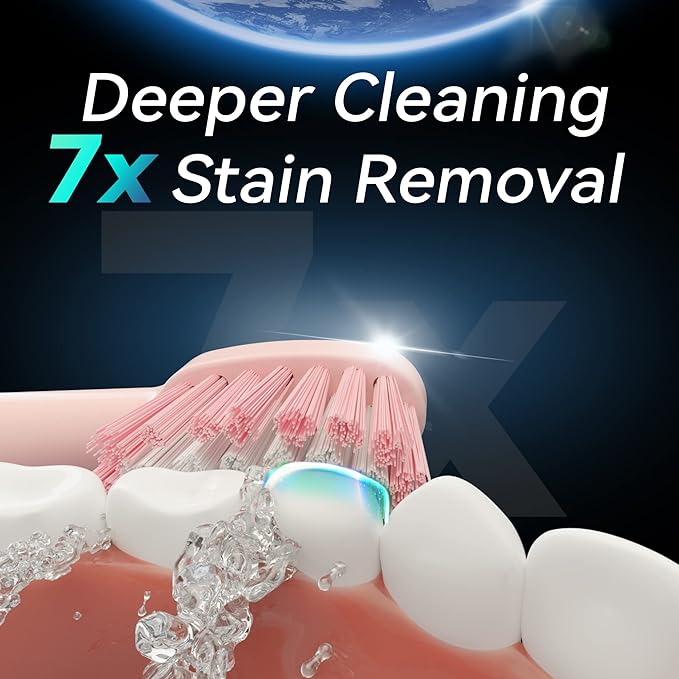 7AM2M Sonic Electric Toothbrush for Adults and Kids- High Power Rechargeable Toothbrushes with 8 Brush Heads,5 Adjustable Modes, Built-in 2-Minute Smart Timer,4 Hours Fast Charge for 30 Days(Pink)