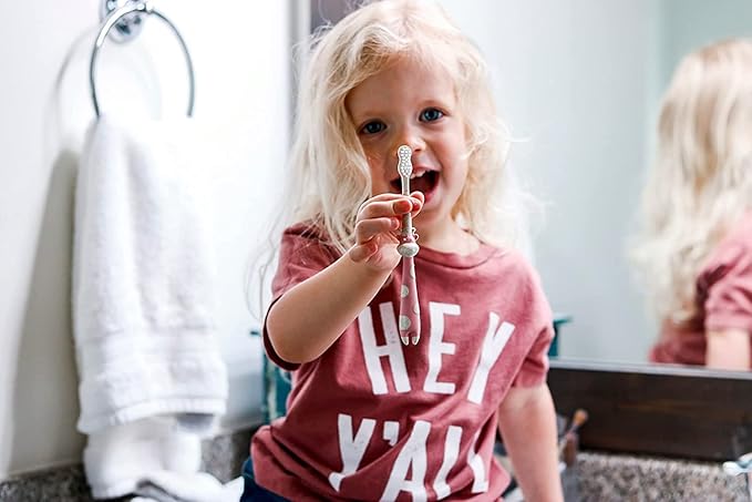 - 100% Natural Choice Toothbrush: Made from all-natural organic plant material with a fully biodegradable and compostable handle, these toothbrushes are a true eco-friendly and vegan-friendly product that teaches our little ones about the importance of sustainability and protecting our environment.