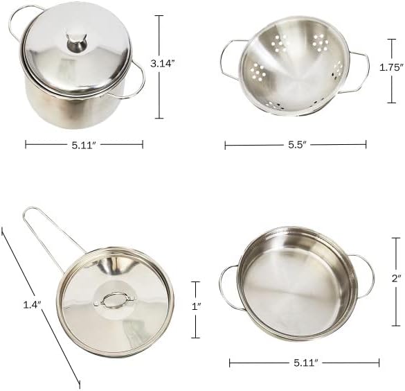 - REALISTIC PLAY KITCHEN SET – This 23-piece playset includes durable stainless-steel cookware, colorful cutting vegetables that make a realistic sound when chopped, and an adjustable apron and hat to help your little one feel just like a real cook.