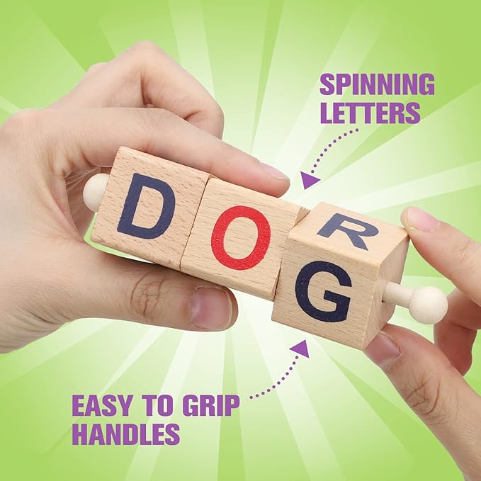 - Learning is Fun! A toy that is not only super fun, but will teach your little one to read ! Featuring 3 and 4 letter word blocks that can change from one word to another. Blocks rotate to make more words!