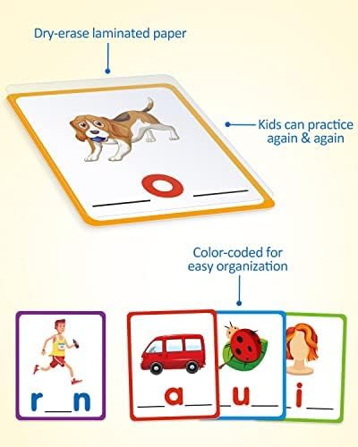 - High-Quality Cardstock: The pictures are colorful, the cards are sturdy, and there is a wide variety of CVC words for practice. They are all lamination cardstocks that are splash-proof and easily wipable, which can use again and again. The pictures and words are legible, which makes them easy for early readers to use.