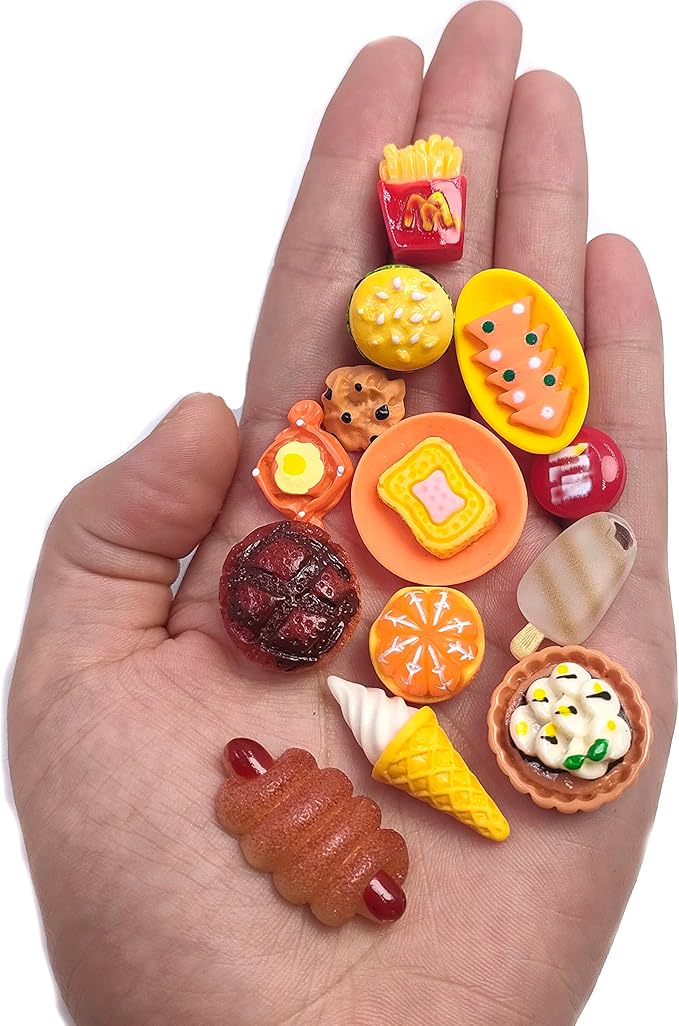 - WIDE RANGE OF USESG——these tiny cute food toys are not only great addition to dollhouse ,Livingroom, Bedroom, Diningroom,Study Room, Sewing Room, Bath Room, Play Room , but also nice decoration to hairpins, sewing, scrapbooking, mobile phone, picture frame, stationery boxes, miniature garden, potted landscape, window display etc. Or embellishment to any other DIY project as you like.