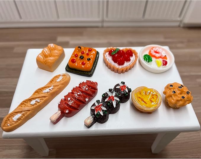 - PERFECT GIFT - Miniatures make a perfect gift for Birthdays and festival to friends who like arts and crafts, family who likes DIY etc.Great for adding life atmosphere for your dollhouse, containing foods suitable for dinnertime and teatime, you can serve meals for dolls or friends, which can great adding life atmosphere for your dolls, help pretend play in kitchen set cooking.