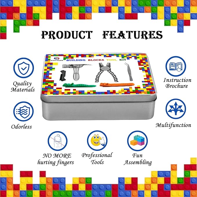 - GOOD GIFT OPTION AND SERVICES: The whole tool kit comes with a nice and strong tin box with a user instruction in it. It can be a great gift option for yourself, families, friends who love toy building blocks. This whole tool set will surely make them have fun and joy in building blocks. We hope you are happy with our products, please feel free to contact us for any possible questions you may encounter for the purchase. We will always find you the best solution and your trust and support are very important to us.