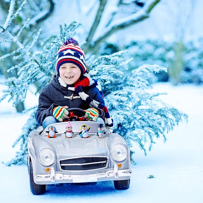 - 4 Types Penguin Figures: they are wool hat penguins, blue hat penguins, black hat penguins, and earmuffs penguins, as like 4 cute and funny dwarfs, adding warmth and joy to the cold winter