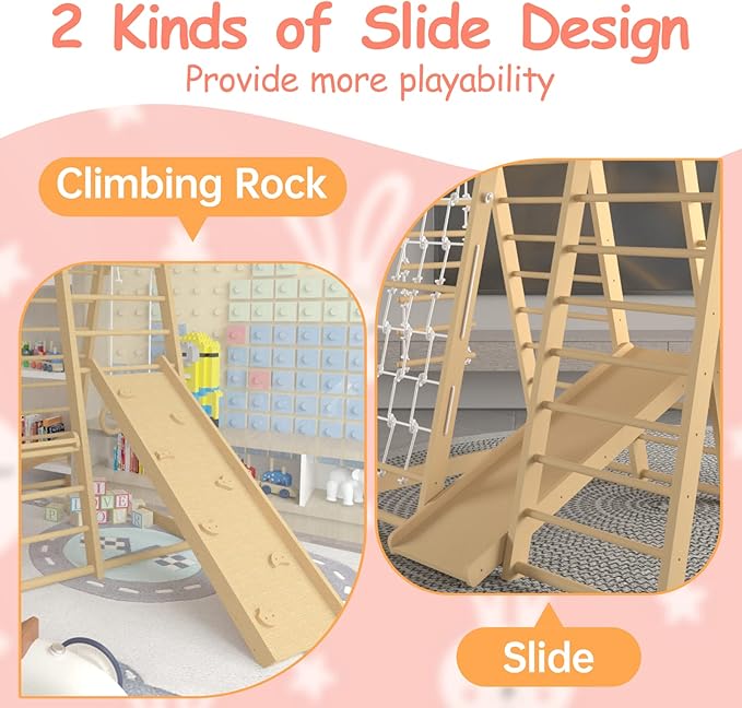 - 【Sturdy & Stable】 Our indoor climbing toys for toddler is made of industrial-grade wood and is extremely durable. The sturdy nails and smooth feet provide stable support and excellent capacity. The maximum load of each climbing part of kids climbing toys can reach 200 pounds, allowing 2-5 children to play at the same time