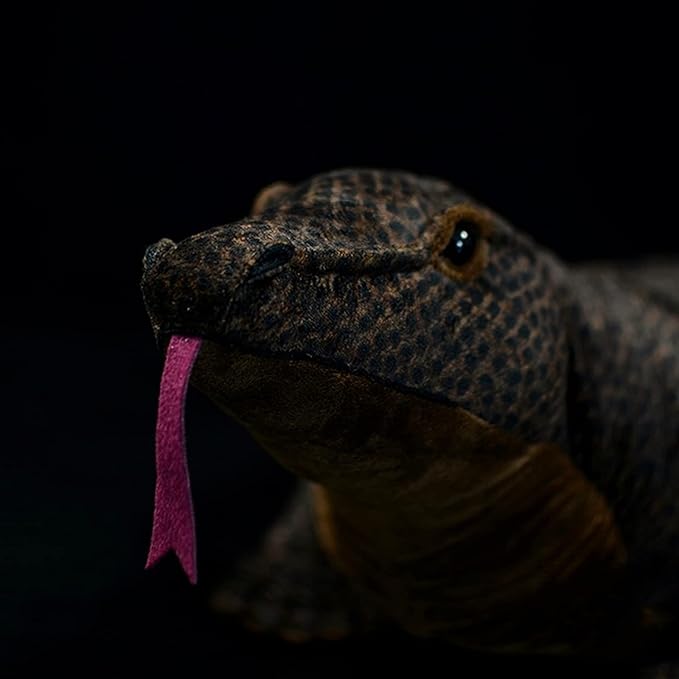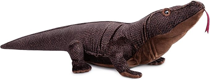 - REALISTIC APPEARANCE: Our little 30in long komodo dragon toy is brown texture all over, The adorable face and squeezable body of our monitor lizard plush are made from premium cloth and filler. its the brown fur is smooth and soft, the overall shape design is realistic , and the face design is unique, very realistic. The smart eyes make it more vivid and lifelike.