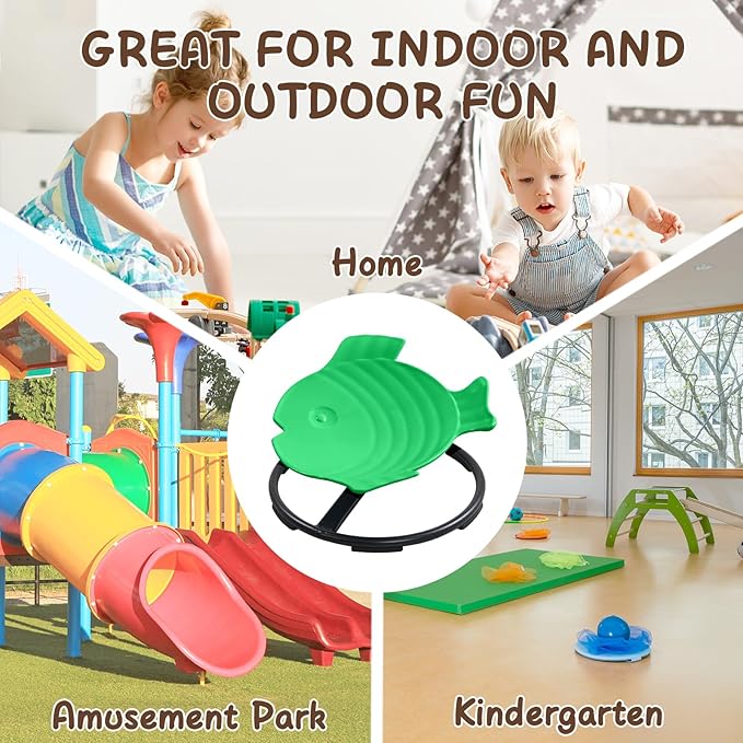 Sit and Spin Spinning Activity Toys for Toddlers with Arm Rest and Swivel, Wobble Chair - Sensory Spinning Seat for Kids, Training Body Coordination, Green