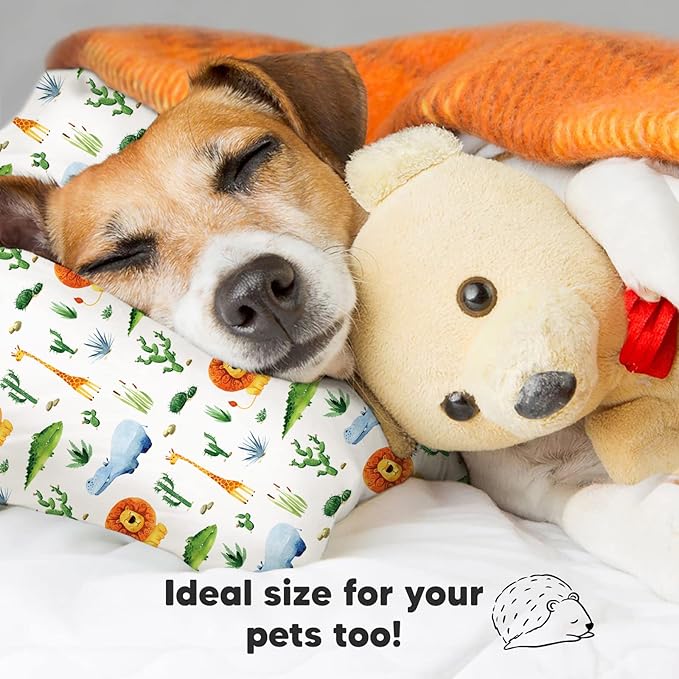 Toddler Pillow with Pillowcase - 13x18 My Little Dreamy Pillow, Organic Cotton Toddler Pillows for Sleeping, Kids Pillow, Travel Pillows, Mini Pillow, Nursery Pillow, Toddler Bed Pillow (Zoo)
