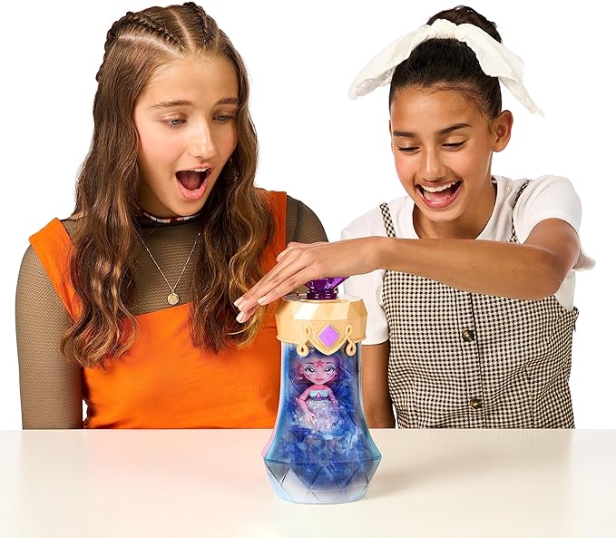 - Add the magical ingredients and watch as your elixir becomes a deep blue color inside the bottle, then turn and press down on the Crystal Gem topper…