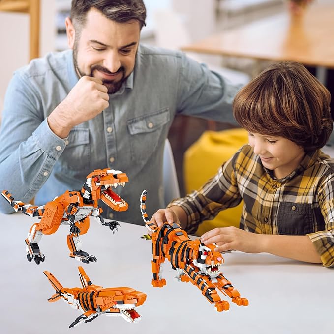 • 【3 In 1 Animal Building Blocks Toy Sets】Your kids can assemble Tyrannosaurus Rex, Tiger and Shark, The Kids can easier to learn & recognize the shape and structure of animal by building them, lmproves children's interest in building and color recognition ability. Enjoy the challenge of building an Tyrannosaurus Rex/Tiger/Shark, Then show off to friends and family, and add this beautiful display piece to your bedroom or den