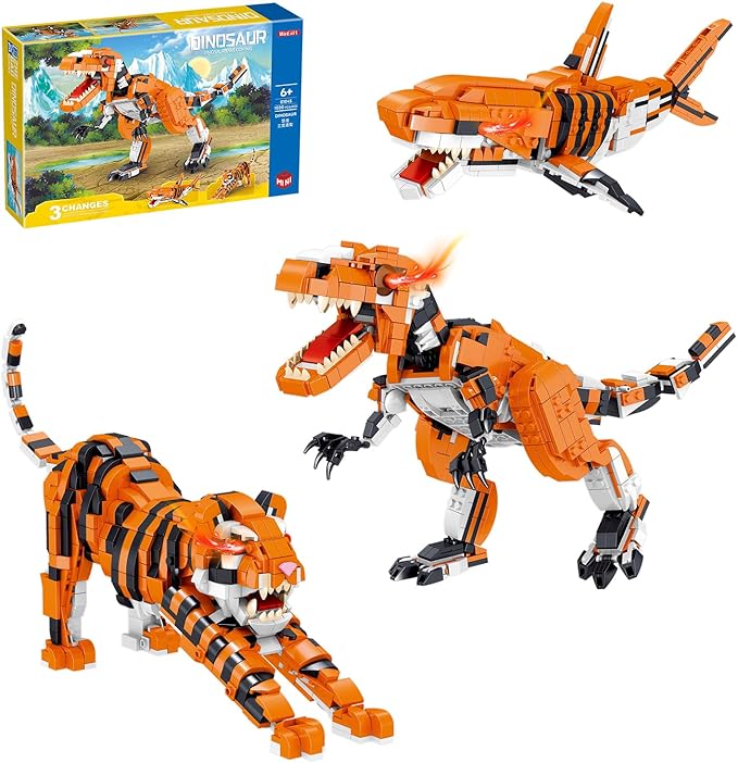 1030 Piece STEM Building Toys-3in1 Mini Transforming Toy Building Set with Dinosaur/Tiger/Shark Building Kit, Educational Toy for Kids 6-12, Christmas Birthday Gifts for Girls Boys Ages 8-14+