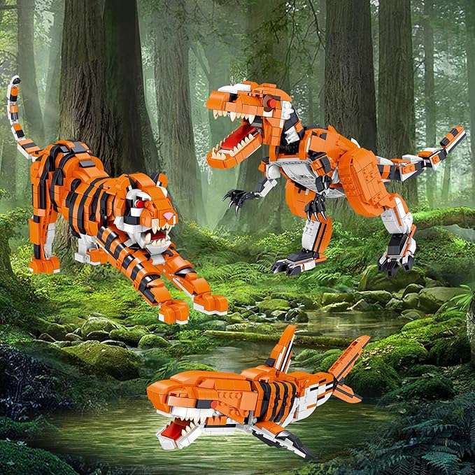• 【Realistic Shape Design】Tyrannosaurus rex toy can move its head, Body, Shoulders, Jaw, Legs and tail. Tiger toy can move its jaw, Legs, Feet and tail. Shark toy's head, Body and tail can Swing left and right, the fins can swing up and down. More than 10 flexible joints are special design to pose in different poses, Satisfying the love of building block fans for animal model theme, Helps provide hours of pretend play for block fans