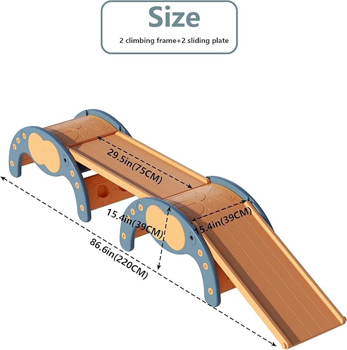 - 🧡 [Solid material and] It is absolutely safe for children. The climbing arch and slide suit is made of HDPE material, free of BPA, non-toxic and odorless. All parts are smooth polished, smooth and burr-free, ensuring that your children play and grow in a safe environment.