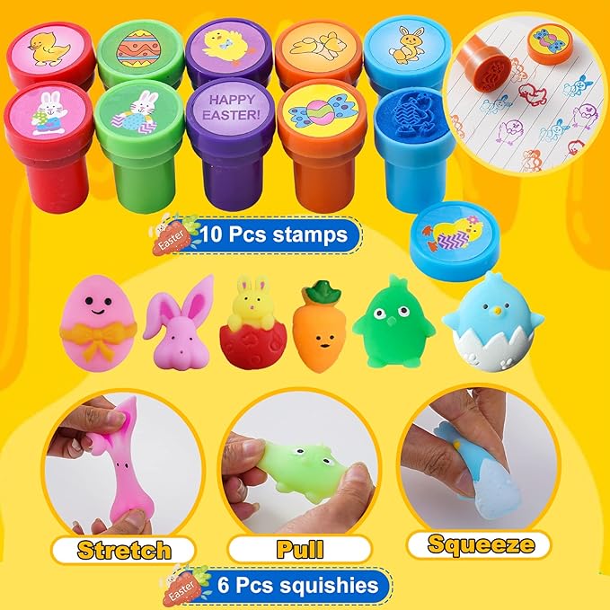 - Portable and Water Resistant - These Easter stress relief toys are no loose or noise-making pieces, making it great for playing in a car, bus, office, or plane, in a restaurant or at school. It's also water-resistant, so you can play with them anywhere, even during bath time! Can be washed and reused over and over again.