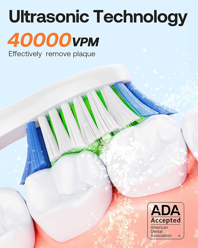 - ADA Approved for a Brighter Smile in Two Weeks: Electric toothbrush for kids and adults delivers 40,000 strokes per minute, removing more stains than a manual toothbrush; Reveal a healthier smile effortlessly with this affordable toothbrush