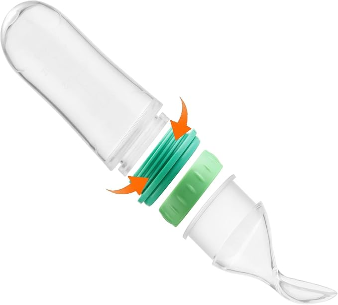 PandaEar 2 Pack Baby Food Spoon Dispenser + 2 Silicone Baby Spoons| Baby Spoon Bottle Feeder| 4 oz Squeeze Spoon Feeder for Baby Food| Travel Friendly Kids Toddlers Boys Girl