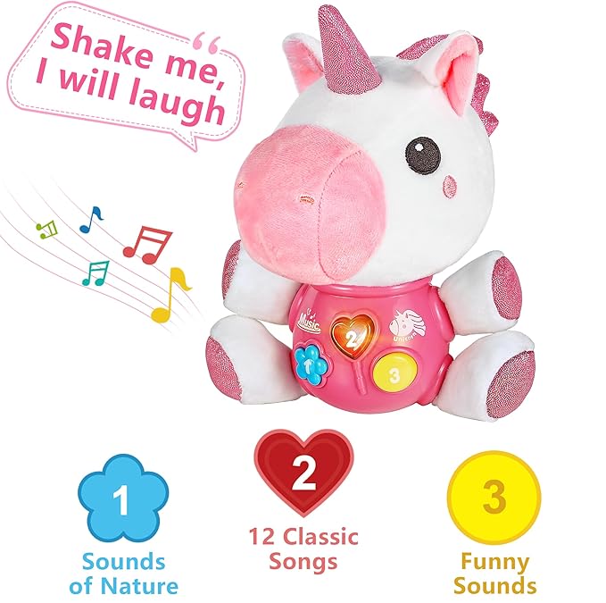 - 【Promotes Development】: While engaging with this toy, your baby will develop sound cognition abilities, fostering brain development, creativity, and imagination. The soft, light-up musical unicorn also helps soothe babies, promoting peaceful sleep throughout the night.