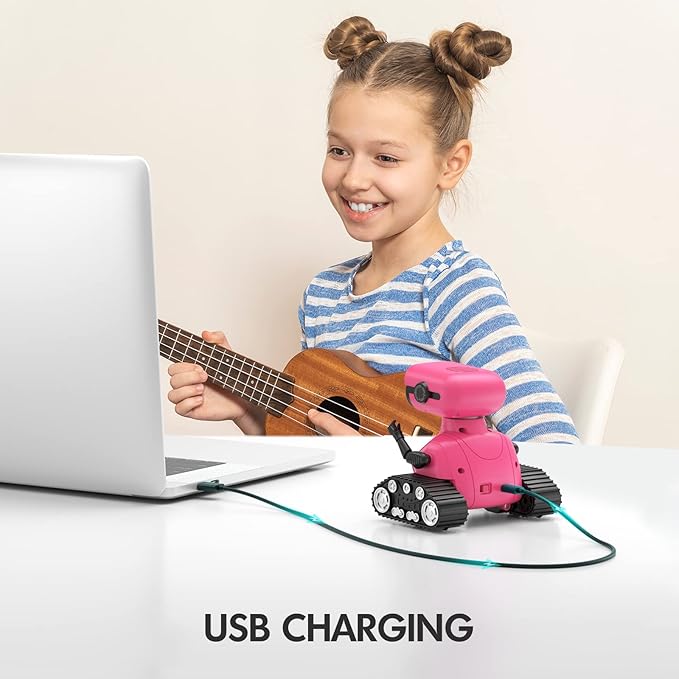 - Fantastic Appearance: This cute and funny robot is design in 2 part. The upper part is a cute robot with a pair of LED eyes and the gesture can be adusted.The bottom part is a pair of tank tracks. Besides, we adopt a exquisite packaging for this robot. It will be a great birthday or Christmas gift for your kids. Robot Size:4.9*3.4*4.7 inches.