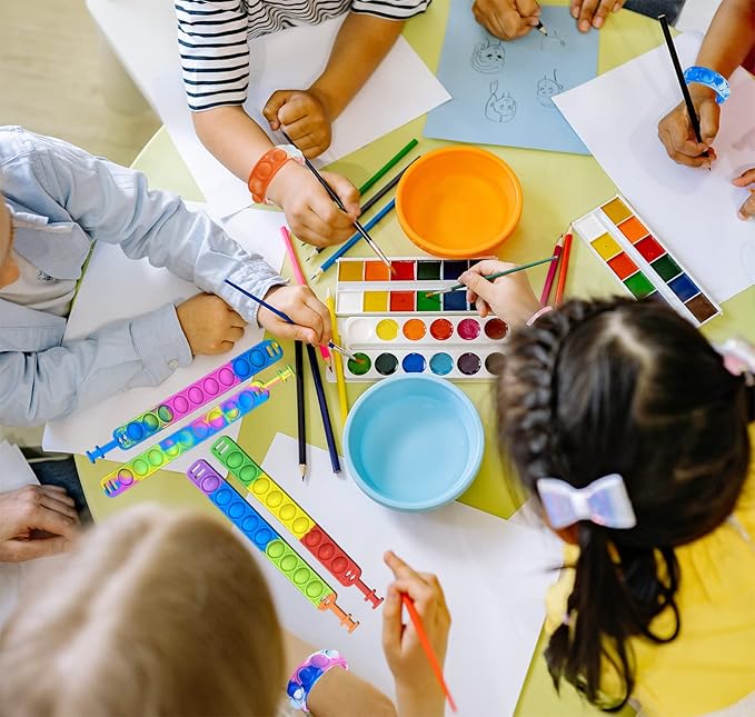 - 【Perfect Gift Idea】: This pop fidget bracelet toy is made of high-quality silicone, which is kids friendly, and not easy to break, easy to carry. These are perfect Christmas gifts for children or as party favors. Make the school life be more fun. These are also wonderful student gift incentives and prizes for kids. It is the most popular small toy for stress relief today.