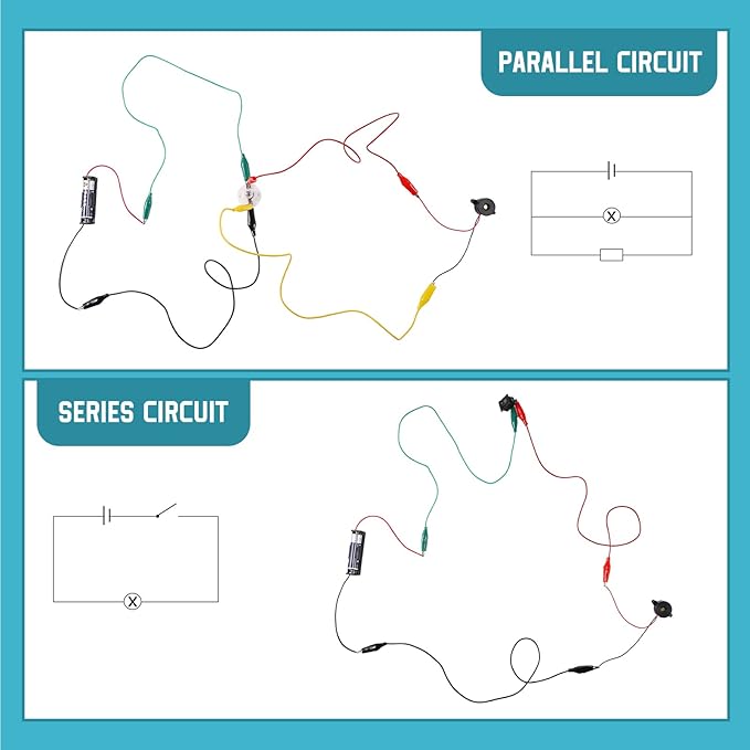 - Comprehensive and Complete: This electric circuit kit comes with everything you need to get started, every pack includes 4 crocodile clip leads, 3 bulbs, a bulb holder, an AA size battery holder, a motor, a rocker switch, a propeller fan, an organized bag, comes with 3 packs. You won't have to worry about missing any essential components, making it easy to start your projects right away