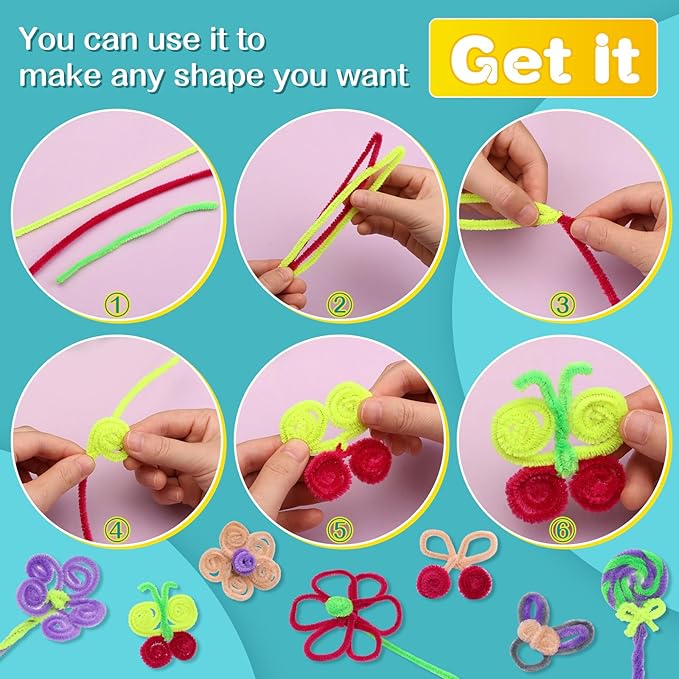 - How to use: Pipe cleaners can be twisted into any shapes you like, such as animals, fruits, vegetables, and so on by your ideas. It is a good item for young people to release their imagination.