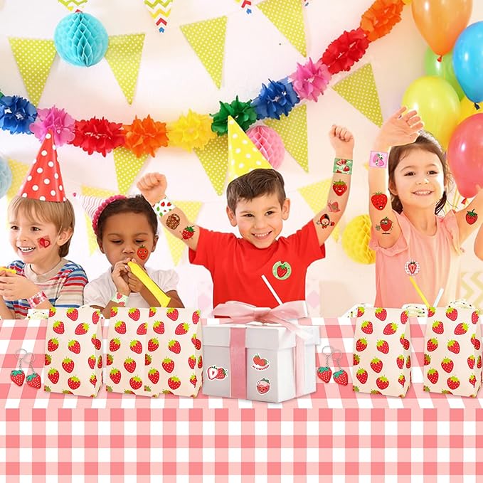 - Novel and Unique Party Supplies: Sweet strawberry first birthday party supplies contains well-designed by the designer slap bracelets and key chains, vivid badge, cute stickers, paper bags, Sealing stickers in various styles and temporary tattoos are sure to stand out at parties