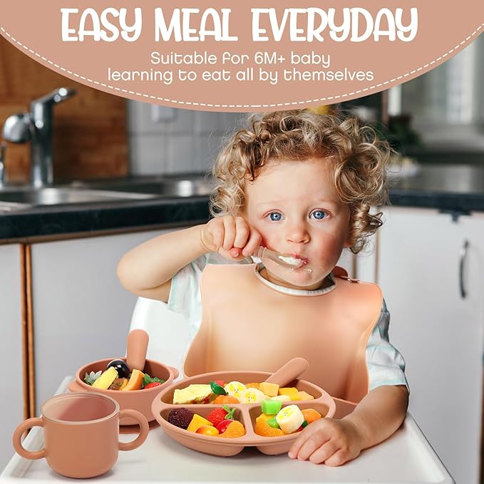 - Divided Suction Design: the bowls and plates in this baby feeding set are designed with a suction design, effectively avoiding the plates and bowls from slipping on the table, thus playing a good anti slip effect, which can better reduce mess and keep your little baby more independent at mealtimes
