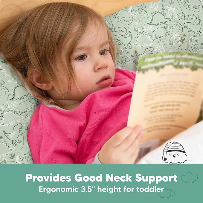 Toddler Pillow with Pillowcase - 13x18 My Little Dreamy Pillow, Organic Cotton Toddler Pillows for Sleeping, Kids Pillow, Travel Pillows, Mini Pillow, Nursery Pillow, Toddler Bed Pillow (DinoDood)
