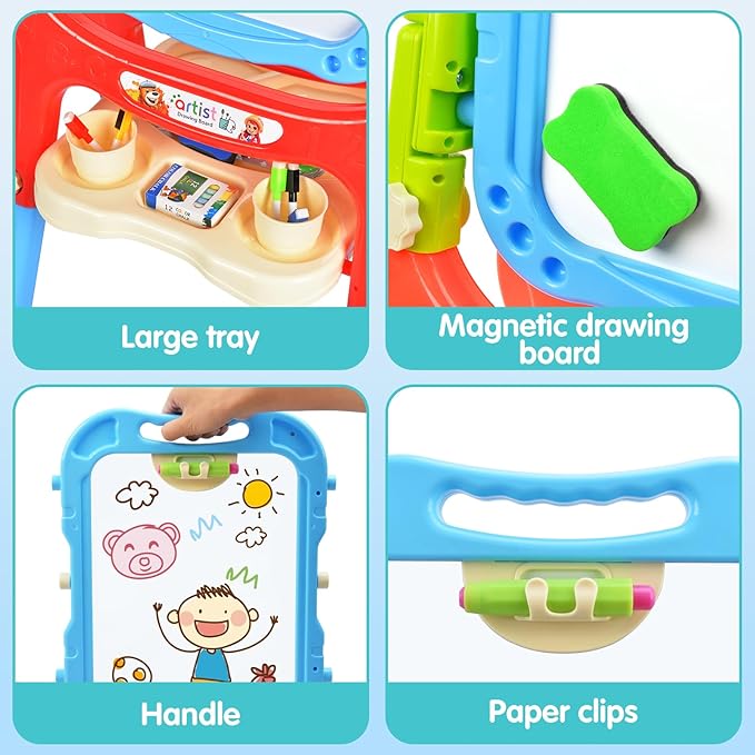 - Multi-use Easel For Toddler: To inspire painting, drawing, and countless ways to play creatively and strengthen fine motor skills, imagination, concentration, communication, spatial & visual awareness and lots more.It is the best gift for children, and the best product to accompany children to grow up and educational.