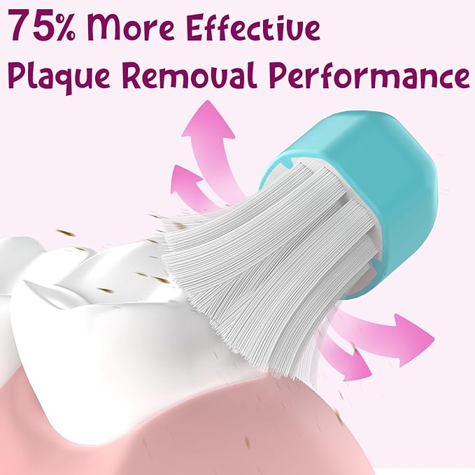 - Cavity Prevention with Gentle Cleaning: The end-rounded and densely-packed bristles of our kids electric toothbrush replacement heads effectively clean between teeth and along the gum line, providing gentle care for your child's tender gums and enamel. This gentle cleaning action helps prevent cavities, ensuring that kids receive the best possible clean