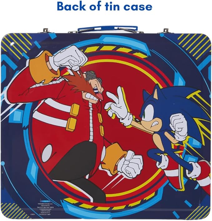 Innovative Designs Sonic The Hedgehog Deluxe Activity Set for Kids with Carrying Tin, Coloring Sheets, Stickers, & Art Supplies, 200+ Pieces