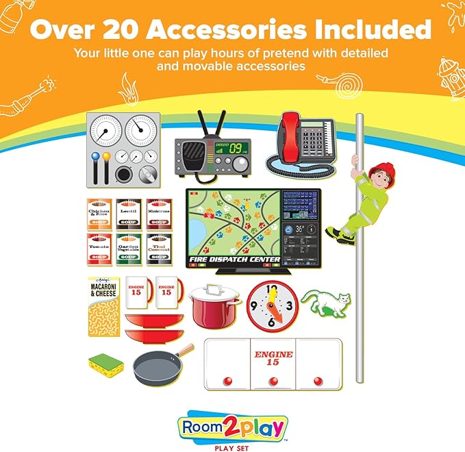 Fire Station - Large Kids Pretend Play Set for Toddlers Ages 3+ Years –Wooden Toy Playset Folds Away for Easy Storage with 20 Fun & Interactive Pieces
