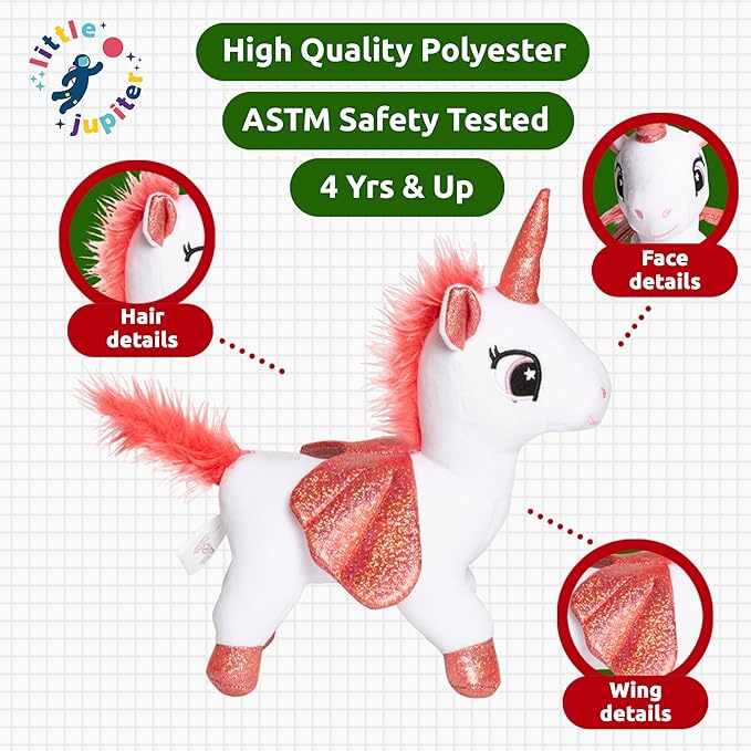 Little Jupiter Plush Pet Set w/Purse - Unicorn Stuffed Animals - Unicorn Stuffed Animals for Girls - Unicorn Plush - Stuffed Unicorns - Unicorn - Unicorn Gift for Age 4-7 yrs (White Red Unicorn)