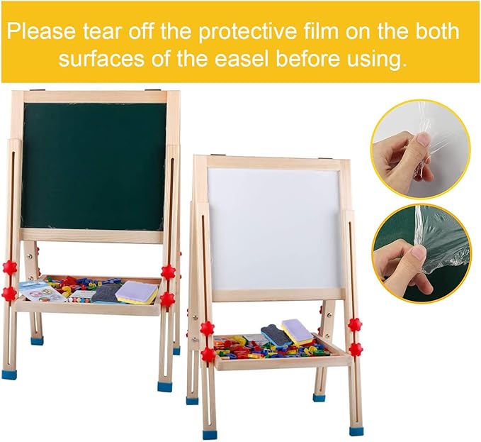 Wooden Art Easel for Kids (Double Sided) - Standing Magnetic Whiteboard Chalkboard Small Toddler Toys PM-048-H
