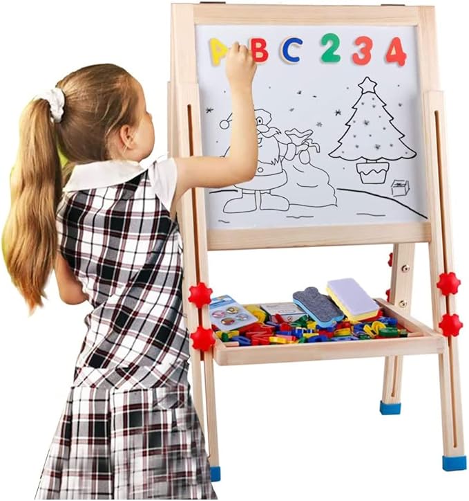 Wooden Art Easel for Kids (Double Sided) - Standing Magnetic Whiteboard Chalkboard Small Toddler Toys PM-048-H