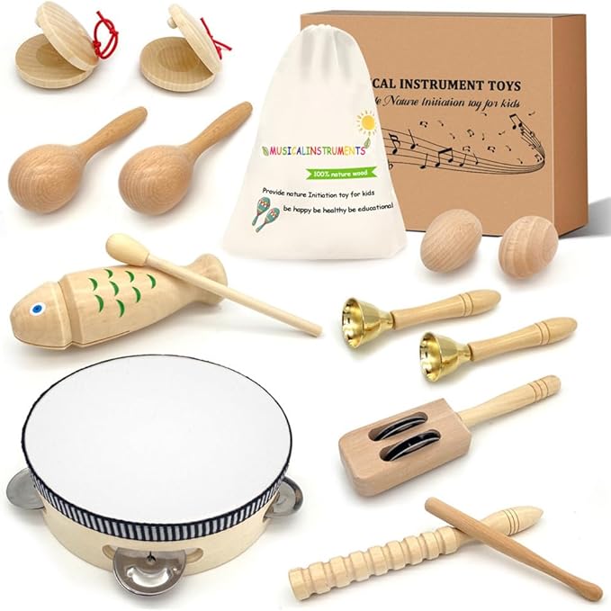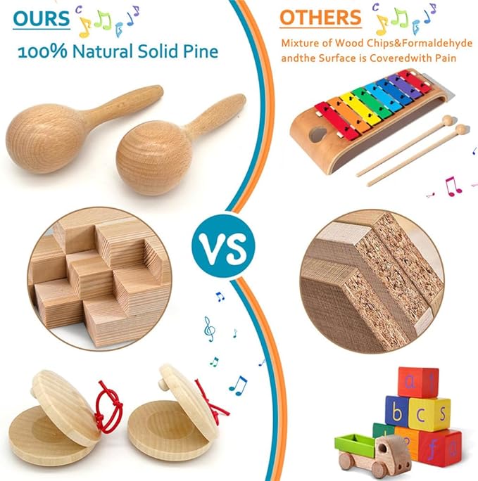 - Natural Wooden&Eco-friendly: Toddler musical instruments toy are made of high quality natural wood,non-toxic,no harmful colored paints,with a smooth finish,100% safe for children and pets,provide an extreme safe playing environment for kids.