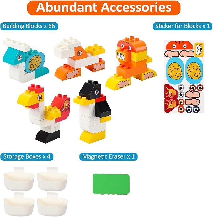 - SUPER VALUE: This easel for kids includes 1 table, 1 chair, 66pcs large blocks, and 4 storage boxes. This 2-in-1 foldable toddler easel with building block table is compatible with Lego Duplo bricks and all major brands building blocks.