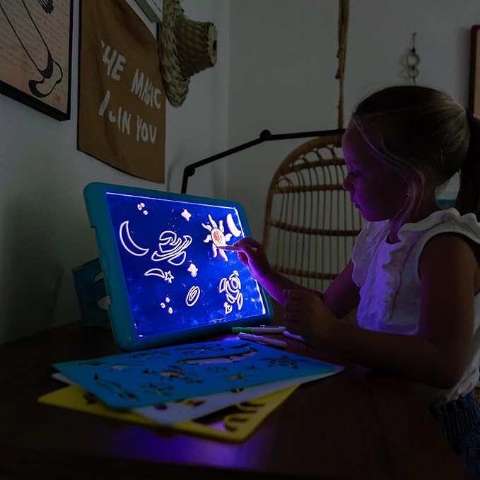 - ✔ BRING ART TO LIFE: Illuminate your creative side with the LED Neon Glow Drawing Easel, featuring LED lights that make your artwork glow in dazzling colors.