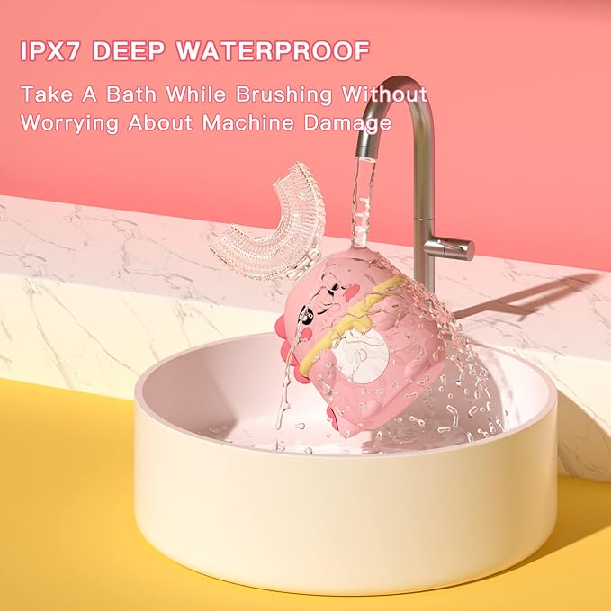 - Two Brush Heads Options: Kids electric toothbrushes provide two brush heads, food-grade silicone u-shaped brush head and soft brush head, U-shaped design is perfect for toddlers and children's teeth, soft silicone, providing a comfortable brushing sensation, thus developing healthy brushing habits, with the soft brush head for more efficient deep cleaning