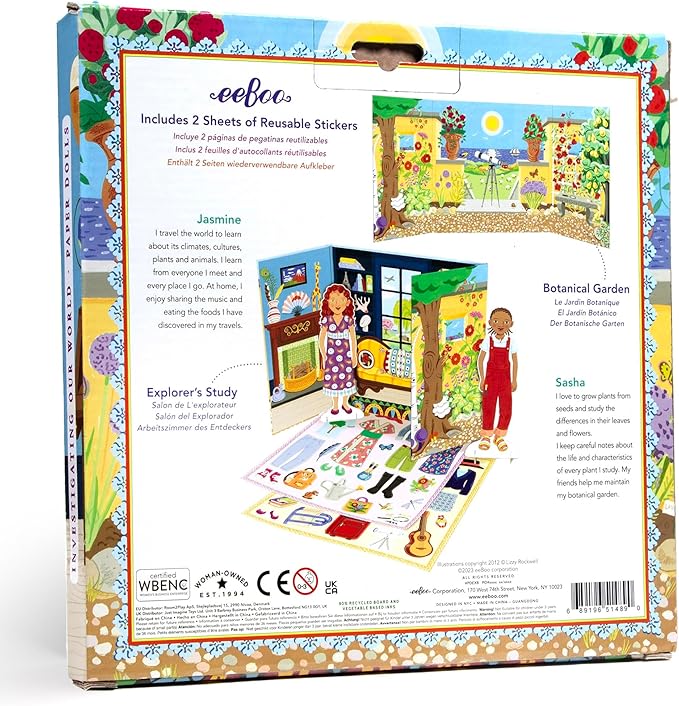 eeBoo: Paper Dolls: Explorer & Botanist - Includes 2 Paper Dolls, Stand Up Scene & Stickers, Kids Ages 5+