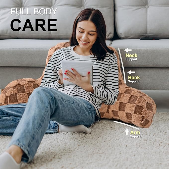 Aimuan Reading Pillow Checkered Bed Rest Wedge Backrest Checkerboard Pillow with Arms Back Support for Sitting Up in Bed Cushion Incline Rest Sleeping Snoring Pillow (Khaki,Large)