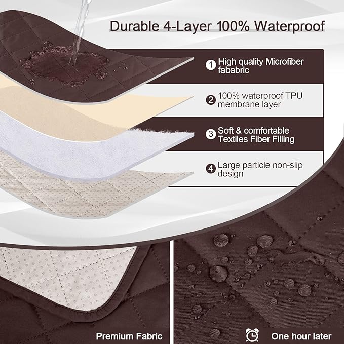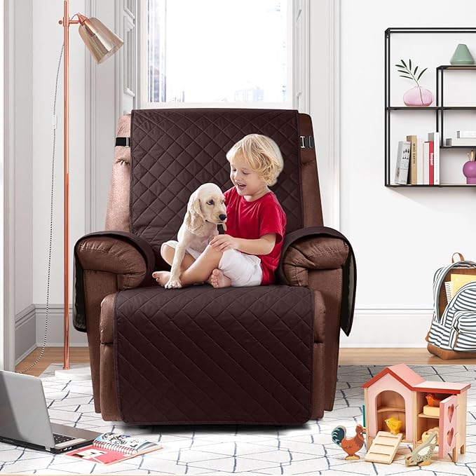 KinCam 100% Waterproof Recliner Chair Cover, Reclining Couch Covers for Pets, Dogs, Recliner Couch Slipcover Furniture Protector with Elastic Straps for Kids(28", Coffee)
