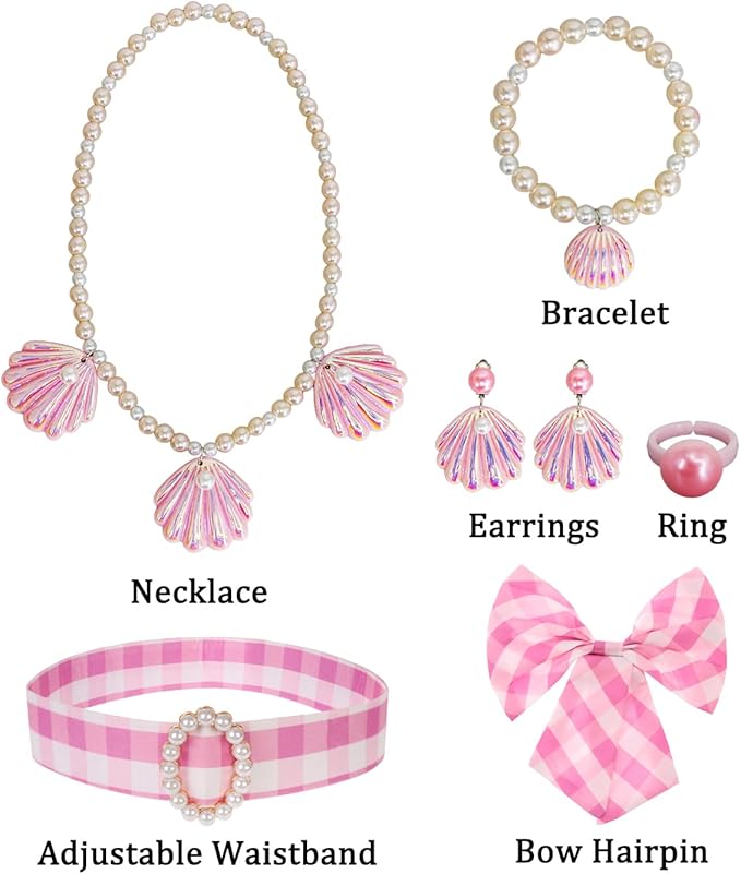 • Products Include: 1 x Pink Girls Costume Dress, 1 x Pearl Buckle Belt, 1 x Bowknot Hair Clip, 1 x Seashell Necklace, Seashell Earrings, 1 x Seashell Bracelet . Such a cute and sweet Live Version Outfit is the best gift for your movie fans girls!