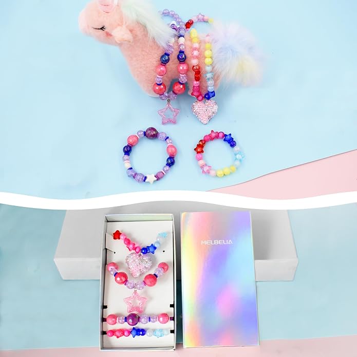 - Size for All Kids: The elastic line is stretch to fit most kids, and it is not easily broken by a child. The necklaces and bracelets are easy to put on and take off.