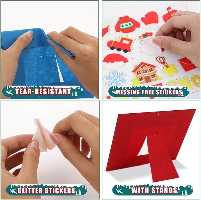 - 【Popular Arts & Craft for Kids】 Try some fresh games with Kids! Just encourage kids to DIY there own colorful Xmas art craft kit with these simple and fun card and sticker activities. With an exquisite and creative design, the Christmas holiday craft is easy to extract photos and reliable to use, and can be changed for many times. Use these craft kits to create a joyful holiday atmosphere.