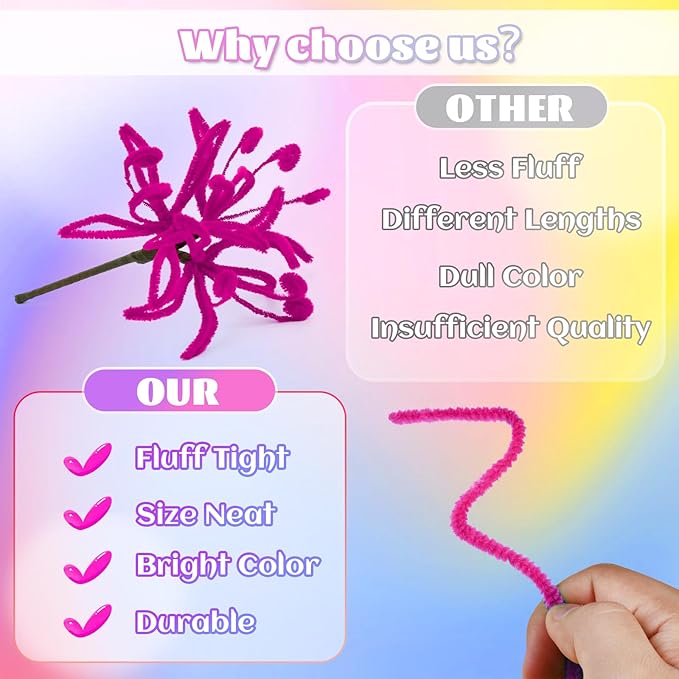 - Stimulate Imagination: These colorful craft pipe cleaners can cultivate hands-on ability, inspire more creative inspiration, and create rich art and crafts. They can be freely matched with pom poms and eyes, which is conducive to intellectual development and interest cultivation