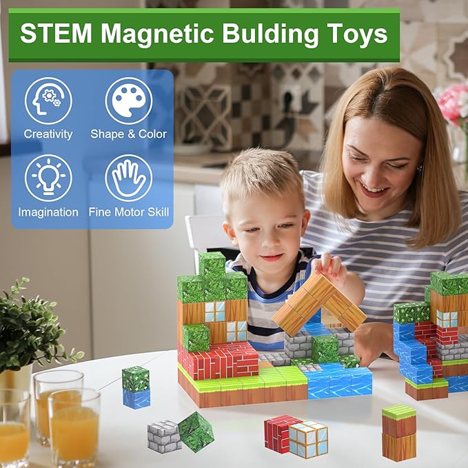 - LEARNING WITH CREATIVE FUN: Get ready to step into the magnetic fun world with our Magnetic Block set! Let the little ones explore, learn, and play with the magic of magnets in a safe and engaging way. Perfect for sparking creativity and learning through hands-on play. Ideal for gifts, parties, and family bonding time. Don't miss out on this amazing toy set that gives endless hours of entertainment.
